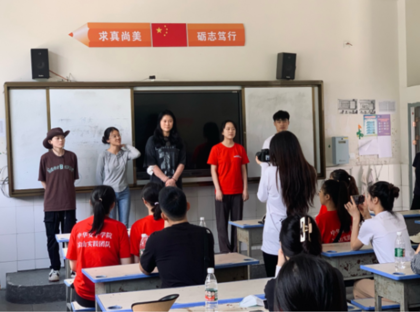 实践团小分队一行七人抵达石门社区后,通过自我介绍和学生自主选择心仪班主任的方式调动学生积极性。为了表示对实践团的热烈欢迎,石门社区不同年级的学生分别演唱了《我还有点小糊涂》、《明天会更好》、《孤勇者》等歌曲,热烈欢迎团队加入,成为他们的老师。学生们还为团队成员演唱了彝语歌曲《喜德拉达》,他们的歌声热情高亢,展现了自信与欢快。