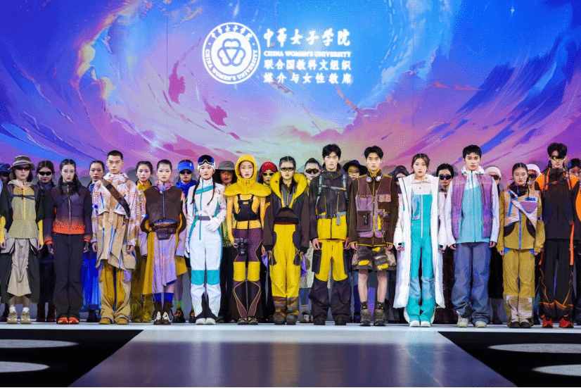 5月15日,中国国际大学生时装周首日,中华女子学院专场发布会在北京798·751园区成功举办。这不仅是一场承载着青春梦想的毕业献礼,更是一场以设计回应时代命题的深度探索。以“悦途她乡”为主题,紧扣“智美无界”、“悦途寻真”、“非遗焕新”三大核心方向,匠心独具地将运动装与非遗技艺、前沿科技功能及当代生活方式融合。设计作品让服饰超越了实用范畴,成为记录故事、抚慰心灵的“移动人文港湾”,传递着对生活的炽热之爱和对远方的无限期待。