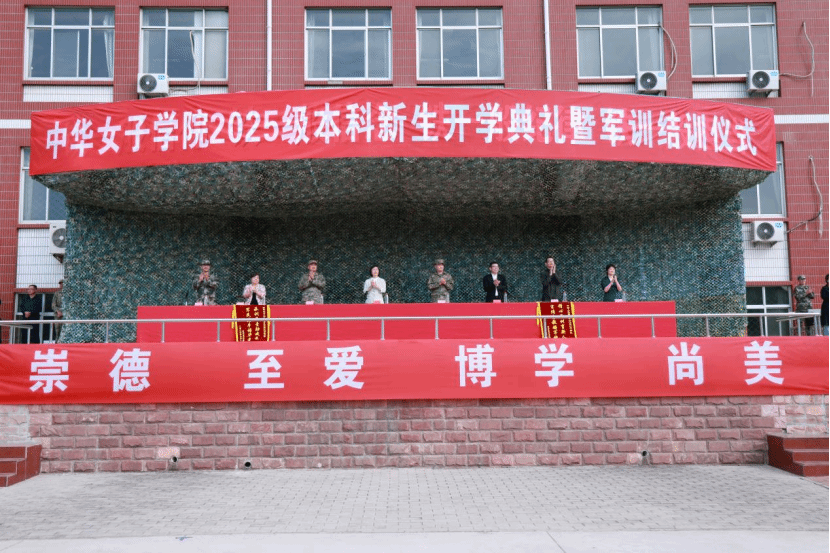 “风雨中诞生,黎明前创建……向着未来扬起知识的风帆……”中华女子学院2025级新生开学典礼暨军训结训仪式在响彻全场的校歌声中圆满结束。