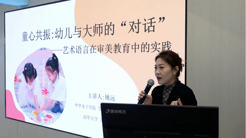 学前教育专业教师姚远在龙岩市儿童保育院开展《童心共振:幼儿与大师的“对话”》艺术启蒙课,探索幼儿审美教育新路径,引导家长鼓励幼儿自由表达情感,提升幼儿审美素养。此次讲座为家庭和学校开展艺术启蒙教育提供了新的视角与实施路径,与会教师与家长纷纷表示受益匪浅。