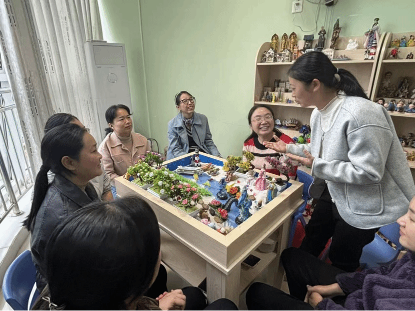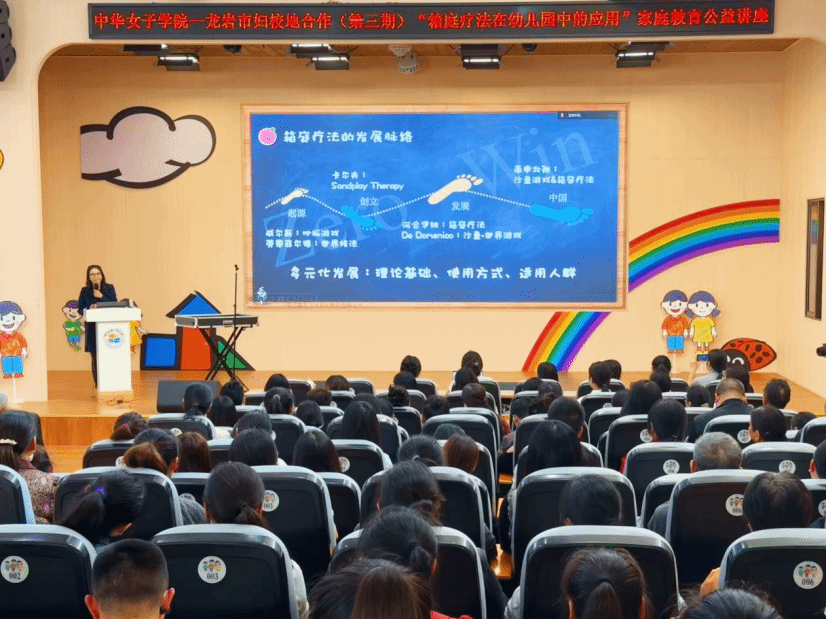 应用心理学专业张雯副教授与龙岩市儿童保育院的老师们共同交流了箱庭疗法在幼儿园中的开展情况,针对一些特殊的案例进行了探讨,并现场与老师们学习并体验了团体箱庭。在漳平市城北幼儿园开展《箱庭游戏在幼儿园中的应用》专题讲座,向儿童家长介绍了箱庭疗法的起源和内涵,游戏对儿童成长的意义以及家庭中父母陪伴游戏的重要性,获得现场教育工作者及儿童家长的高度认可。