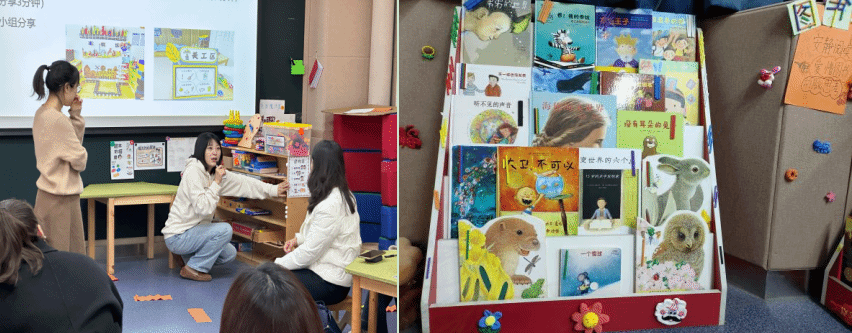 尤为值得关注的是,我校2022级学前教育专业学生在《学前融合教育理论与实务》课程中,基于通用设计理念打造的游戏区角,为本次工作坊提供了实践资源。参训教师通过实地观摩这些兼顾不同发展需求、支持全体幼儿自主参与的游戏环境,直观感受到“尊重幼儿多样性发展需求”理念的具象化表达,实现了从理论认知到实践感知的深度转化。