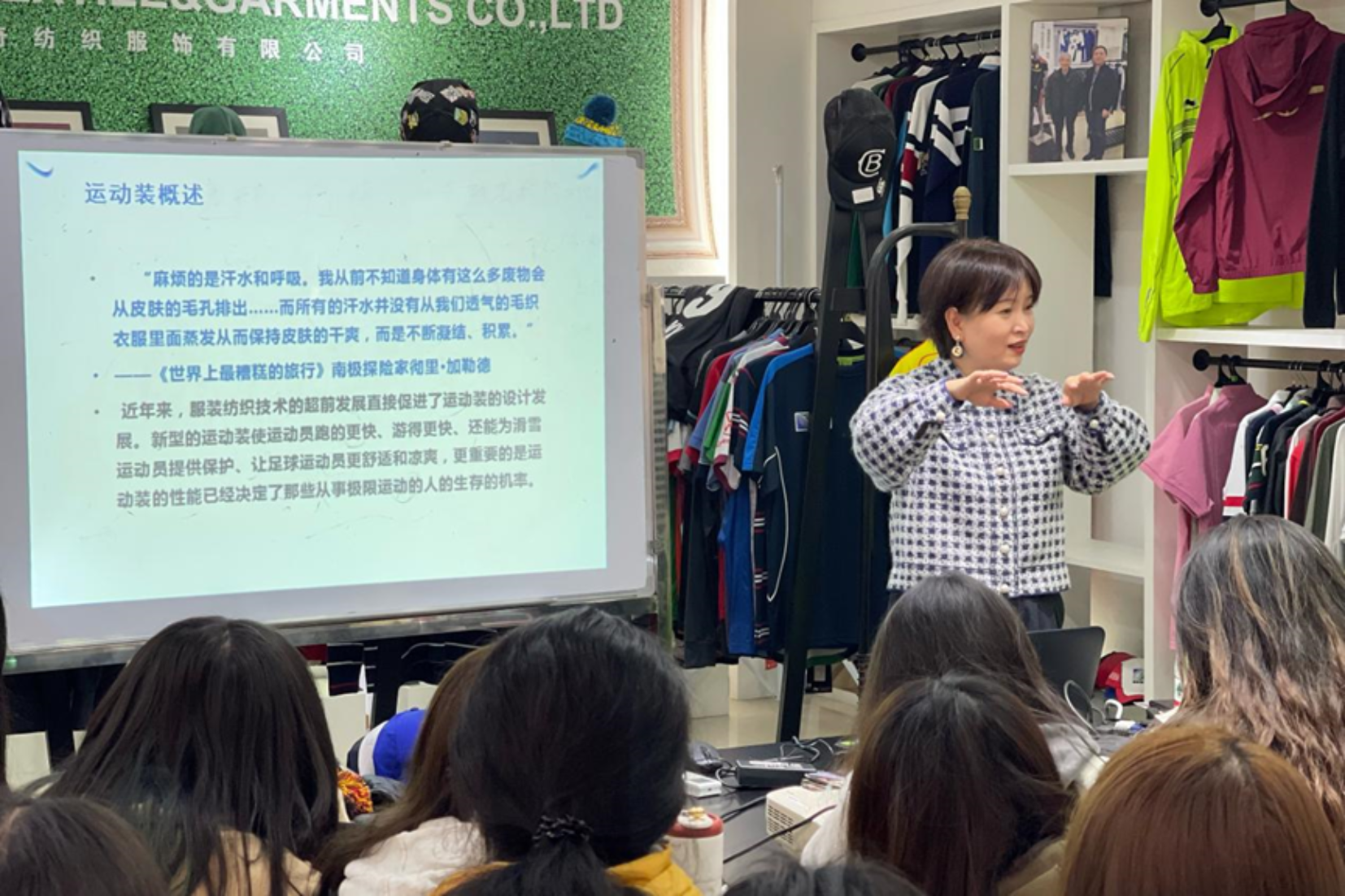 3月4日下午,王露教授在绍兴凯奇纺织服饰有限公司产品陈列室为同学们开启了《运动装设计概论》移动课堂,从课程设计、运动装概述、设计影响要素、设计系统思维、设计流程等几方面对运动装设计进行了全面讲解。以展厅中各类运动服装为实例,让学生们从体验和参与中感悟运动装设计的重点要素,激发了深入学习运动服装设计的热情。