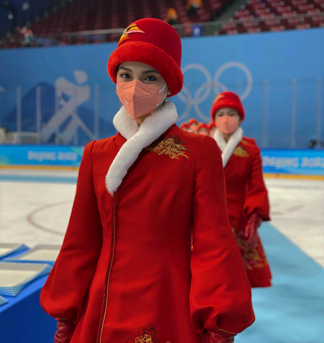 我们在冬奥会开幕之前,就已经进行了一个多月的封闭训练,每个动作的要求都很细致。在进入闭环管理以后,我们的训练也没有停止,除了每天固定的站姿、走姿的练习,还要去冰上练习流程,每个人要熟悉整场颁奖仪式的流程,十分清楚地知道什么时候该做什么。