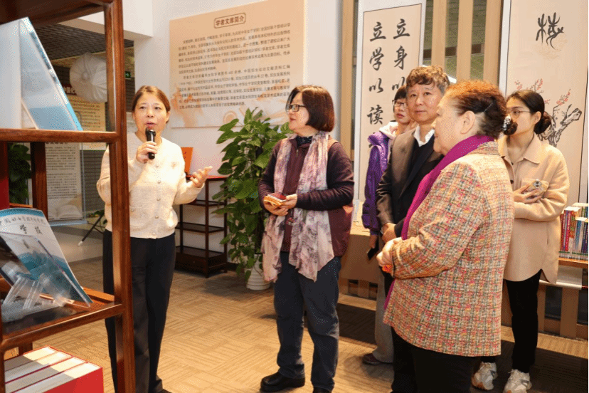 揭幕仪式中,院长刘利群、副院长李莹、孙晓梅教授、葛兰教授和图书馆领导共同为学者文库揭幕。随后,与会嘉宾和师生在图书馆信息咨询部张立省主任的带领下参观了主题展览,深入了解学校75年来的学术发展历程和卓越成就。
