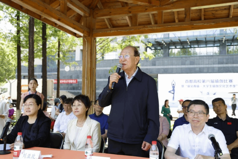 中华女子学院副院长薛小丽致辞。她回顾了2015年北京市大学生体育协会瑜伽分会成立以来,瑜伽运动在首都高校中蓬勃发展的历程。希望这次十年来首度在户外举行的开幕式成为青年学子突破自我的起点,成为高校体育美育改革的支点,成为“健康中国”建设的亮点,共同书写首都高校瑜伽运动新篇章!