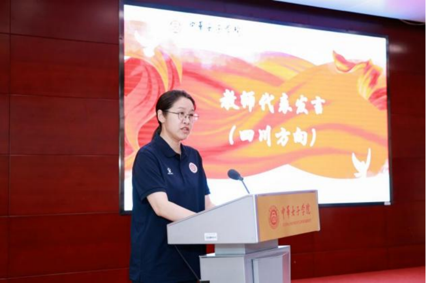 文化传播与艺术学院教师覃晓玲代表赴河南新蔡县的“爱心妈妈”们,介绍了留守儿童关爱活动对接准备的情况,表达了团队“以爱为帆,以行动为桨”的服务决心。体育部教师周惠娟代表即将赴四川、广西、新疆等民族地区开展“足球赋能 石榴花开”足球支教活动的带队教师,阐述了体育育人、特色支教的品牌内涵,期待团队携手并肩,为民族地区的少年儿童送去温暖,促进民族团结,为乡村振兴播撒希望的种子。