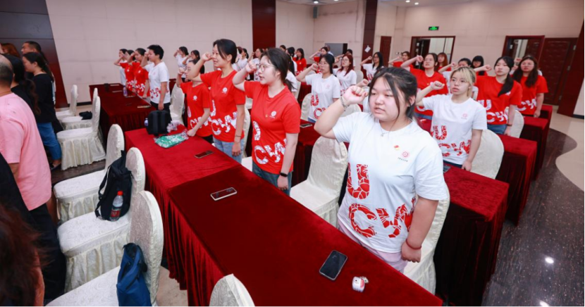 实践团全体学生在校旗前庄严宣誓:将以实际行动服务妇女儿童事业和乡村振兴;用脚步丈量祖国山河,用心灵倾听人民心声,用智慧感应时代脉搏;将青春华章镌刻在祖国的广阔天地,展现女院人的独特风采与巾帼担当。